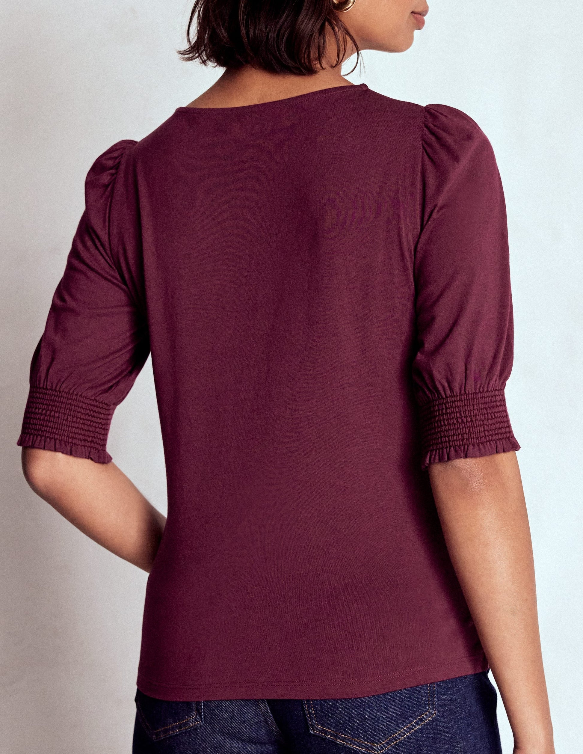 Update your usual jeans and a tee combo with our latest take on the short-sleeve top – the puff sleeves with smocked cuffs make it ideal for work or play.