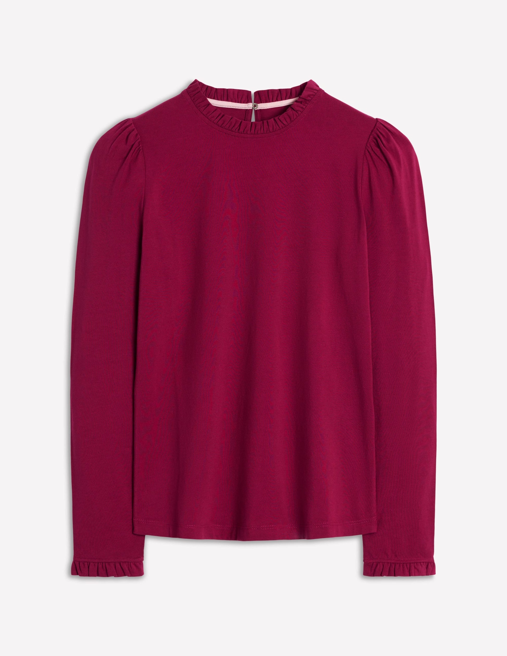For when you'd rather be in pyjamas, but can't really skip that presentation. Our supersoft frill detail top is a joyful kind of a compromise. It works marvelously alone or as a base layer.